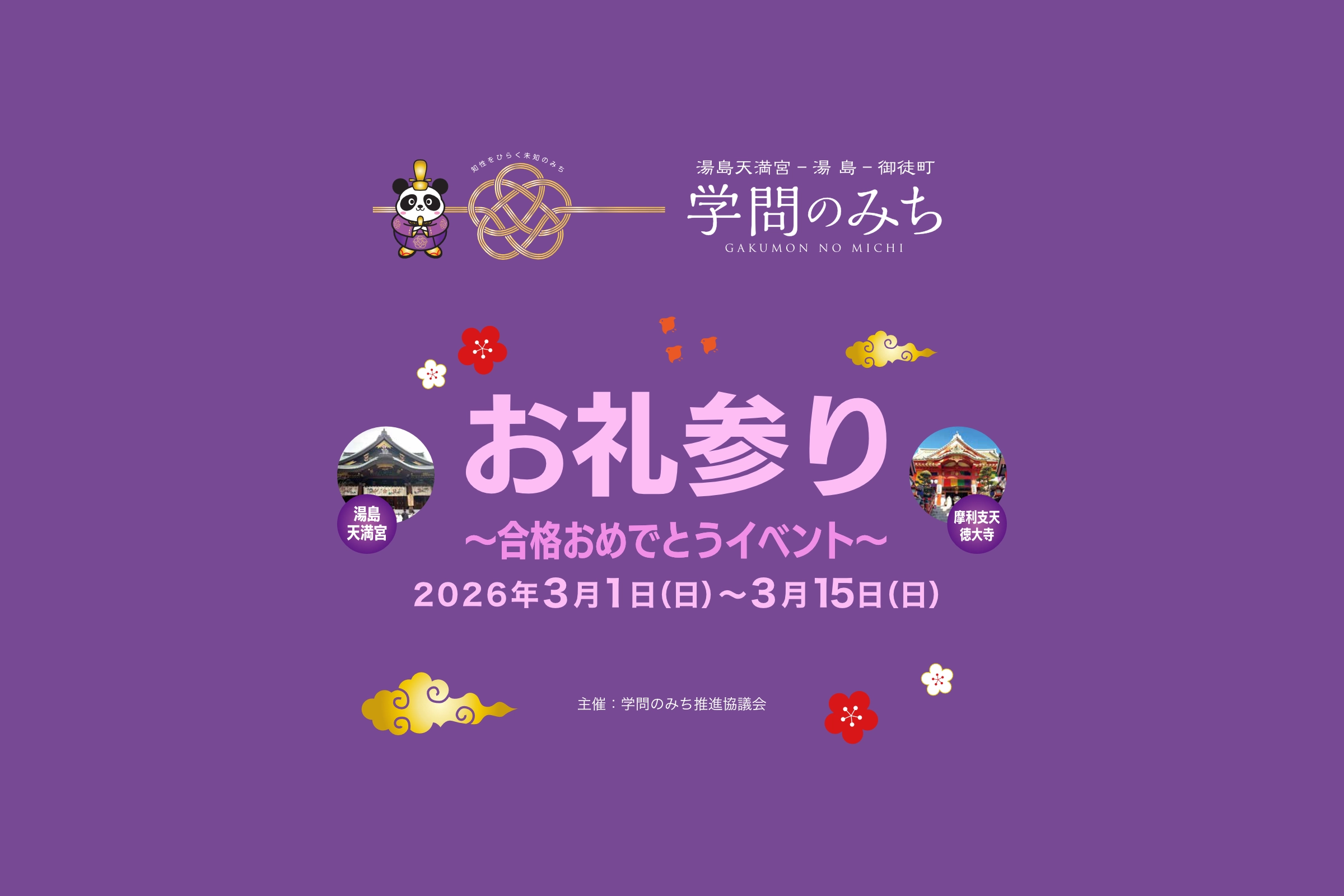 湯島天満宮〜学問のみち〜摩利支天徳大寺を結ぶスタンプラリー。学問のみちを通ってお礼参り!